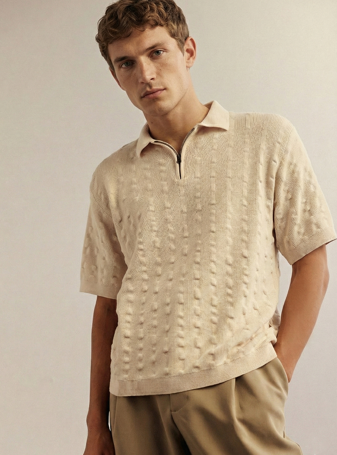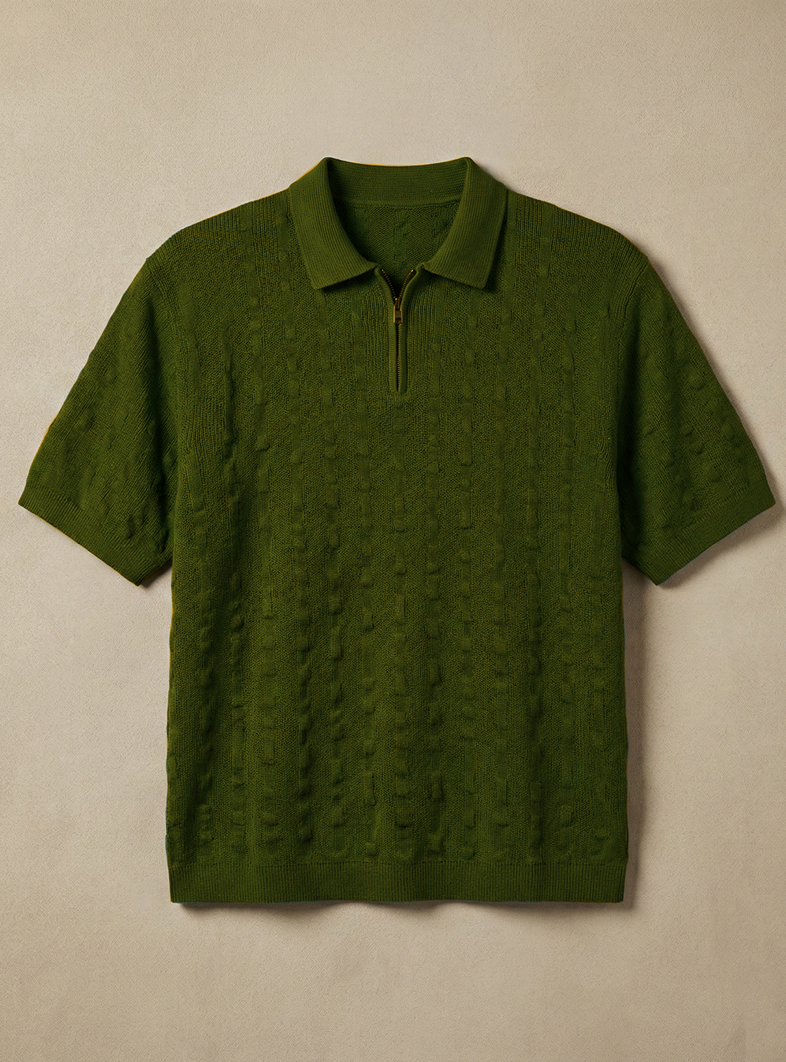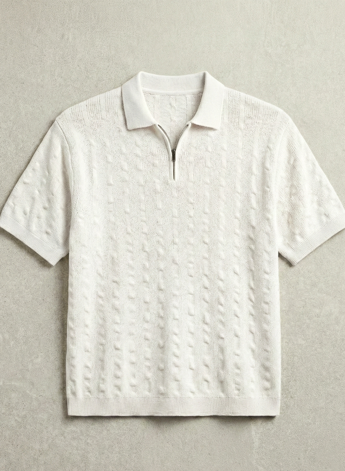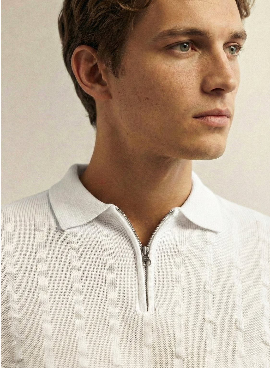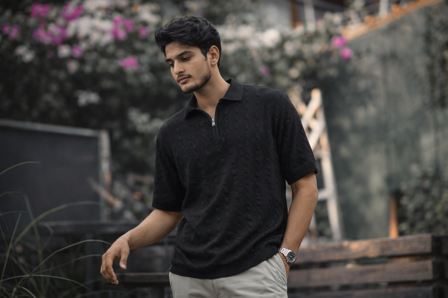Stickad Pikétröja med Dragkedja | Erik – Svart