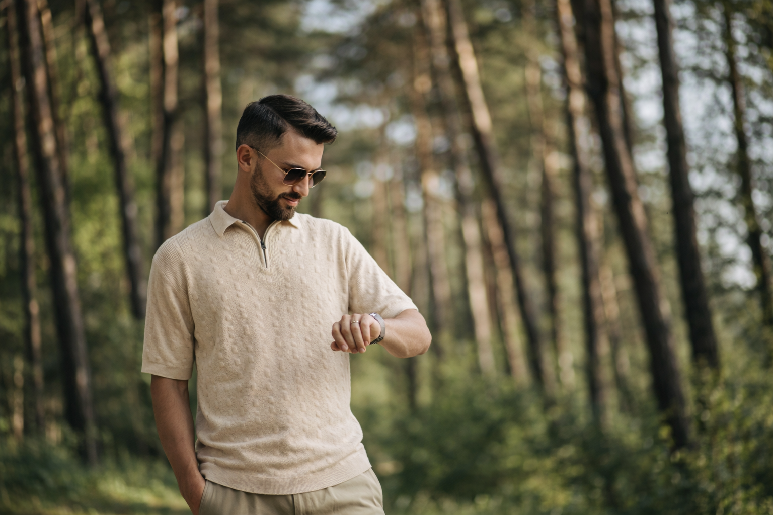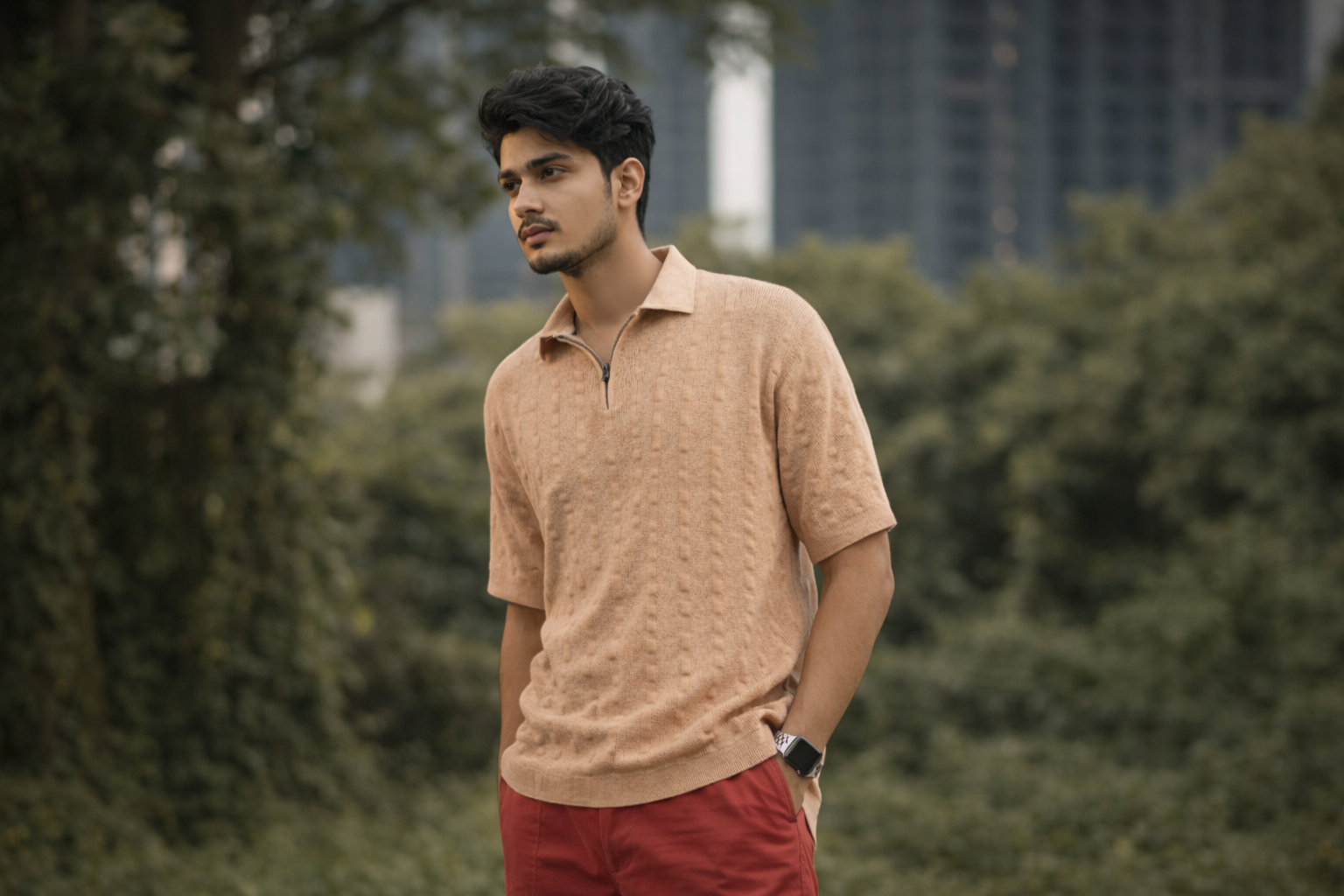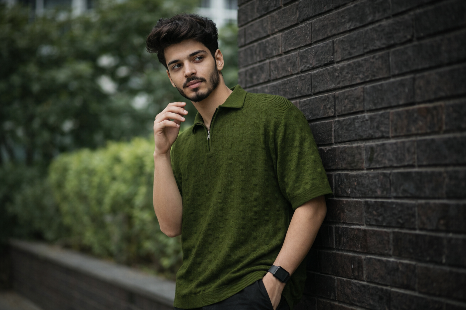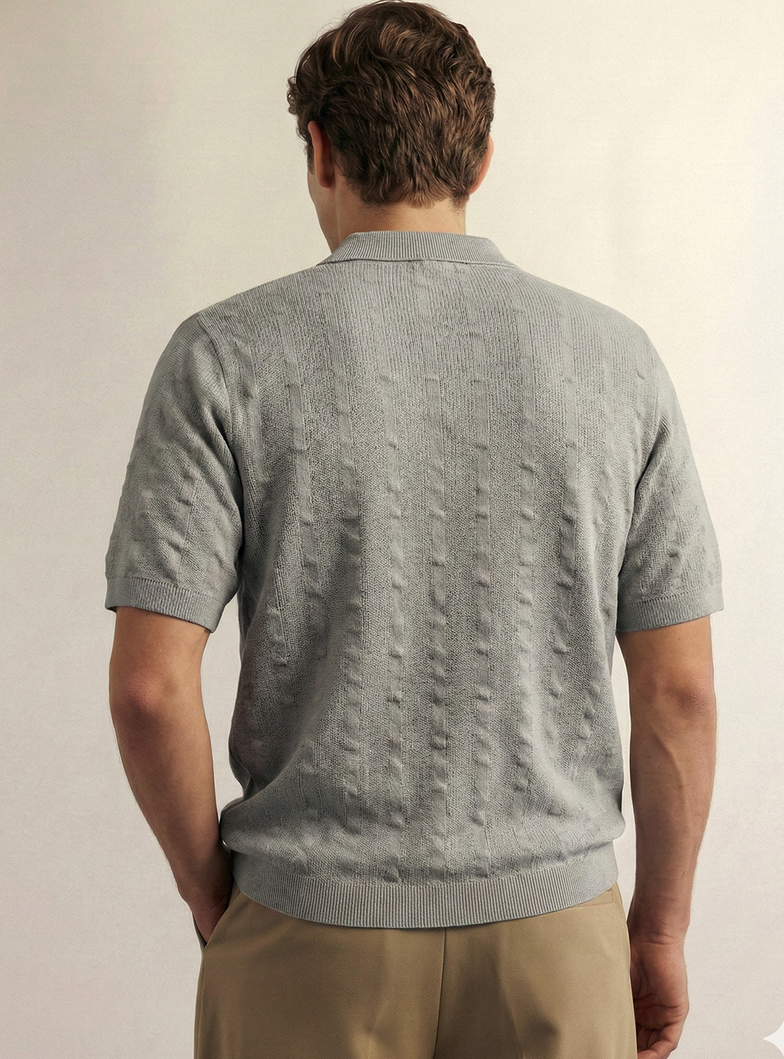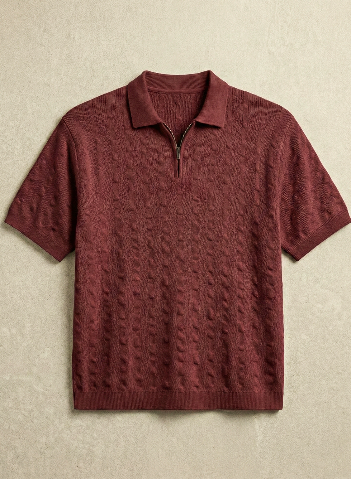 Stickad Pikétröja med Dragkedja | Erik – Svart